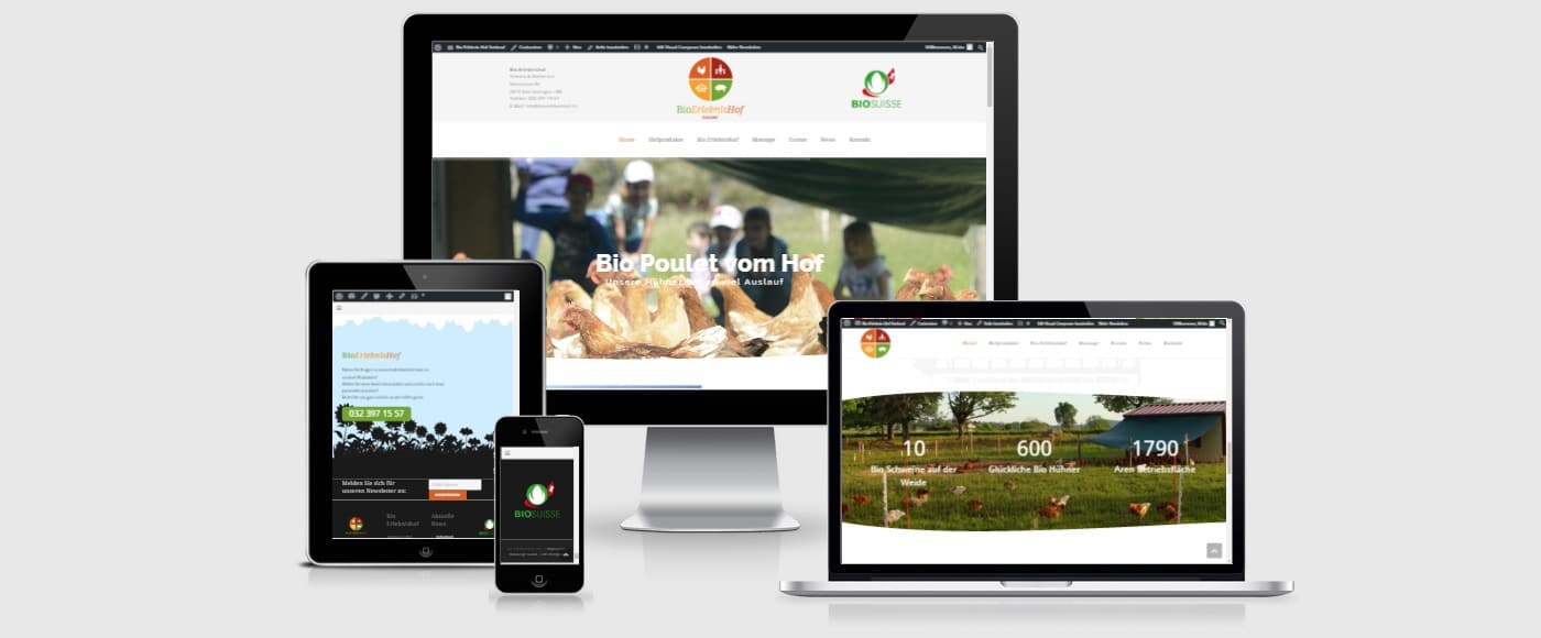 Für den Bio Erlebnishof in Sutz-Lattrigen konnten wir vom Corporate Design bis hin zu der Website alles realisieren. Entstanden ist ein schönes Logo welches die Werte des Hofes transportiert. Die passenden Bilder für die Website, Flyer und Inserat haben wir bei einem Fotoshooting gleich selber erstellt. Die Besucher der Website haben einen guten Überblick über alle Hofprodukte sowie den Betrieb. Auch können Sie bequem mittels Bestellformulare die gewünschten Produkte online bstellen.